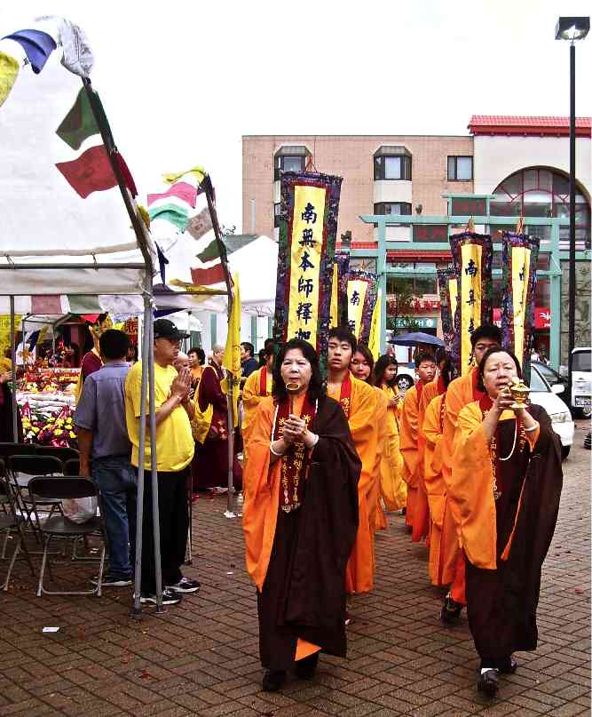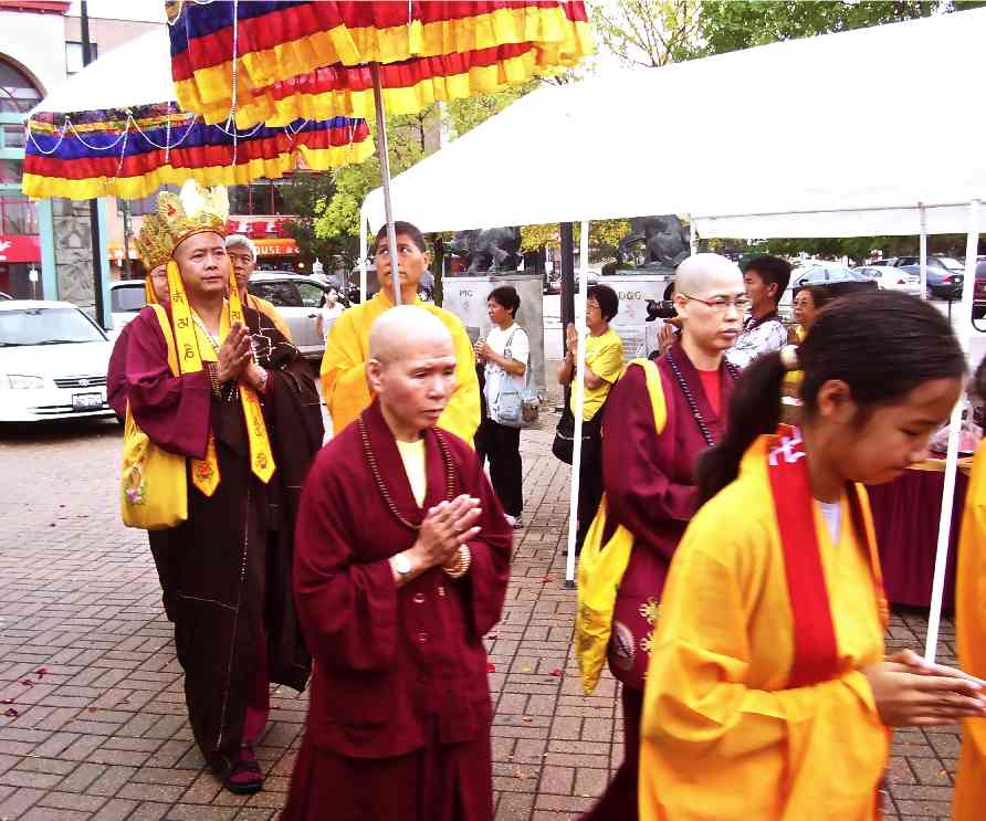 disciples of the Buddha who tend their temple. The chanting ceremony is for the attainment of